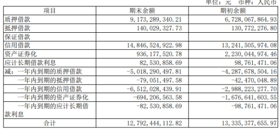 截至报告期末,广汇汽车长期借款共计127.92亿元,同比减少5.43亿元。其中质押借款91.73亿元,同比增加24.45亿元;抵押借款1.4亿元,同比增加925.71万元;信用借款148.47亿元,同比增加16.05亿元;资产证券化9.36亿元,同比减少12.94亿元;应计长期借款利息8253.09万元,同比减少1623.06万元。
