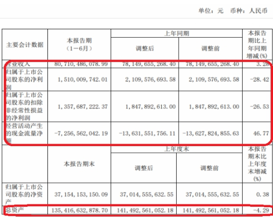 经营活动产生的现金流净额增加的主要原因广汇汽车降低运营资金规模,其中上半年存货减少规模较上年同期提升所致;总资产下降的主要原因为上半年偿还到期应付票据,资产负债规模均较上年末下降所致。