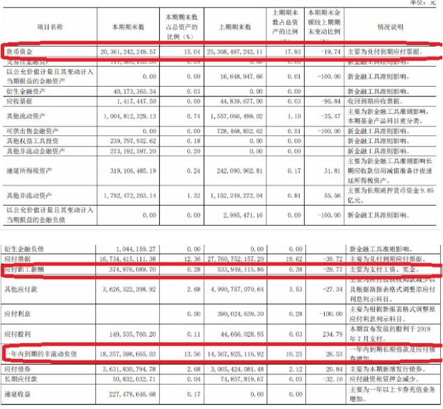 截至2019年上半年末,广汇汽车货币资金总计203.61亿元,同比下降19.74%,占总资产比例15.04%,主要为兑付到期应付票据;应付职工薪酬3.75亿元,同比下降29.77%,占总资产比例0.28%,主要为支付工资、奖金。一年内到期的非流动负债183.58亿元,同比增加26.53%,占总资产比例13.56%,主要是一年内到期的长期借款及应付债券增加。