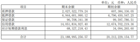 截至2019年上半年末,广汇汽车短期借款总计231.89亿元,较期初增加29.77亿元。其中质押借款20.28亿元,较期初增加14.21亿元;抵押借款69.45亿元,较期初增加1.49亿元;保证借款9670.83万元,较期初减少288.95万元;信用借款140.52亿元,较期初增加13.77亿元。应急短期借款利息6832.72万元,较期初增加3423.29万元。