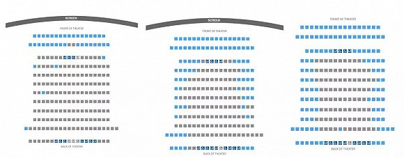 在美国的票务网站Fandango上,纽约和洛杉矶几间影院已经没有多少空余座位了。