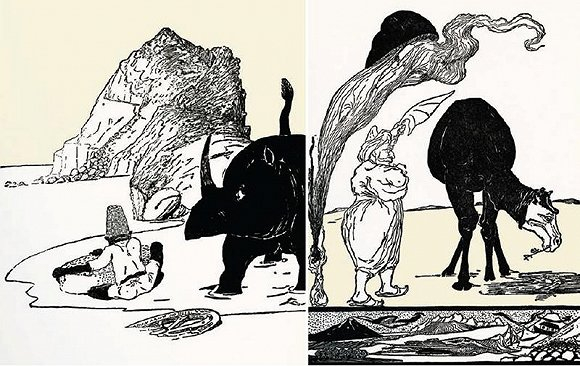 吉卜林的《原来如此的故事》中的两幅插画,此书是他在佛蒙特州的那几年为年幼的女儿创作的故事集 图片来源:Culture Club/ Getty/ The New Republic