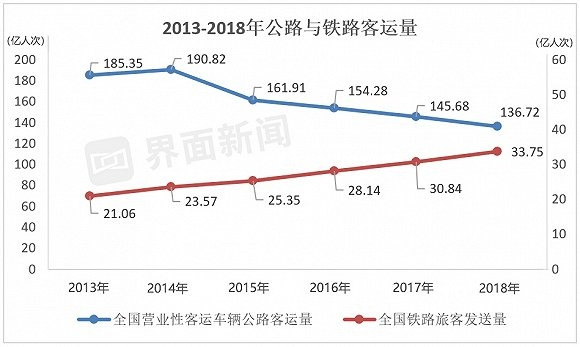 除了高铁带来的巨大冲击外,私家车和网约车也分走了一部分客流。据公安部数据,截止2018年12月,全国机动车保有量达3.25亿辆,其中以个人名义登记的小型和微型载客汽车达1.87亿辆,每百户家庭私家车拥有量已超过40辆,接近每两个家庭就有一辆车。