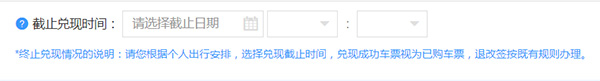 最晚截止兑现时间为乘车日期前一天的19:00。