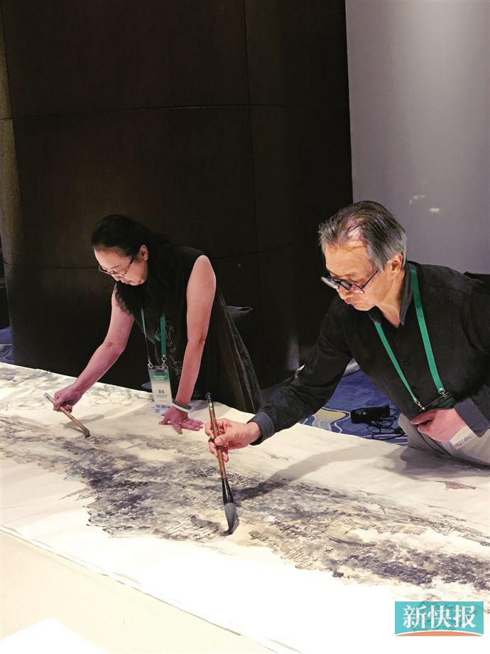 ■张弘(右)、张思燕在创作《濠江揽胜》