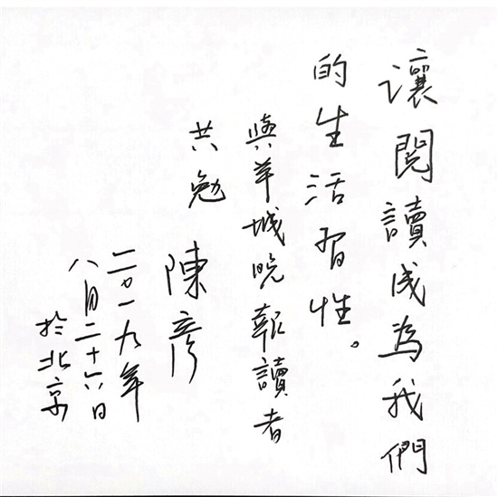 陈彦:我一年到头基本就是家里单位、单位家里,两点一线,几乎不参与任何社会应酬,我不喝酒,也不太喜欢花几个小时吃一顿饭,我坐不住。工作之余几乎都在读书写作,我基本上就是生活着、工作着、学习着、写作着这么一个状态,有时候实在没办法推掉的应酬会坐一会儿,回头找借口就溜了,否则一坐就是四五个钟头,腰肌也受不了。