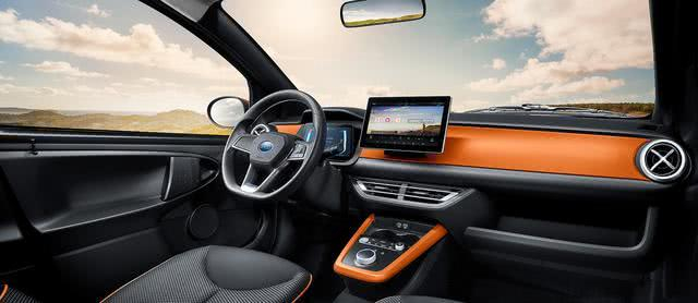 第3,e1整车的长宽高数据分别为3465/1618/1500mm,而轴距达到2340mm,同时,整体的车身设计轮廓以车身“四轮四角”的手法进行打造,一句话,小车型也保证了空间最大化的利用效果,以谋求达到操作灵巧、空间实用性优秀的效果。
