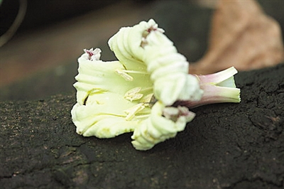 木蝴蝶是紫葳科木蝴蝶属小乔木,原产我国南方,喜温暖湿润气候。一棵树通常会长到三四层楼高,树皮灰褐色,大型奇数羽状复叶。花通常开在高高的树枝顶端,紫红色硕大的花朵,肉质厚实的花冠,檐部下唇3裂,上唇2裂,裂片微反折呈淡黄色。其单朵花的花期仅短短的一个夜晚。夕阳余晖之际,或能看到含苞待放的花苞,鼓鼓囊囊,翌日清晨便只剩下紫色钟状的花萼和长长的花柱。只能在沉甸甸的一大朵落花上,看到雄蕊插生于花冠筒中部,花丝基部很特别,像棉花糖一样的白色棉毛。
