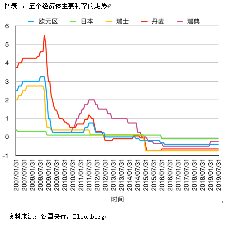 2008年金融危机及随后的欧债危机,给世界各国的经济造成了冲击。为了应对这种冲击,各发达经济体纷纷实行了比如零利率和量化宽松等非传统货币政策。但这些极度宽松的货币政策的效果并不尽如人意,为了对抗通缩和本币升值的风险,丹麦、欧元区、瑞士、瑞典和日本等央行先后实施了负利率政策。