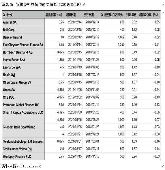随着各经济体央行负利率政策的实施,负利率也逐渐向各个资产市场蔓延。先是国债的收益率变成负的,接着负收益率投资级公司债也出现了,从今年6月开始,市场上开始出现了负收益率垃圾债。