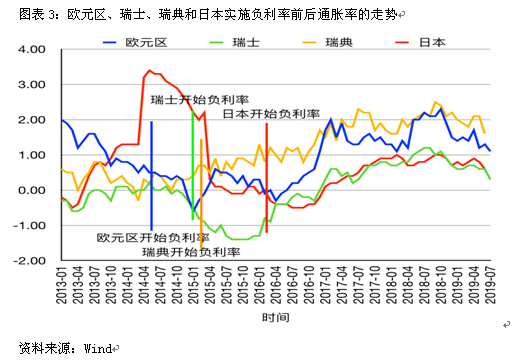 就实施效果来看,负利率有一定的拉动通胀和稳定汇率作用,但这种作用需要较长时间才能体现出来。负利率仅在瑞典实现了对抗通缩和在丹麦实现了防止本币升值的预定政策目标,欧元区、瑞士、日本的通胀率都有一定幅度的上升,但未达到2%的政策目标,而瑞士法郎对欧元也有较大幅度的升值。负利率还增加了银行的成本,降低了银行的利润,抬高了不良贷款率。此外,负利率带来的低成本资金还推高了房产、股票等风险资产的价格。