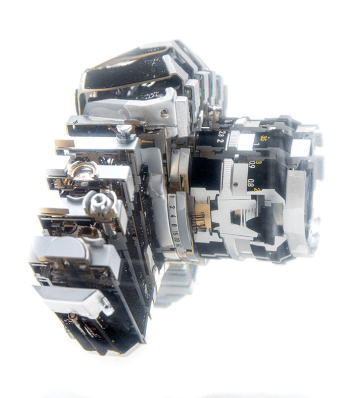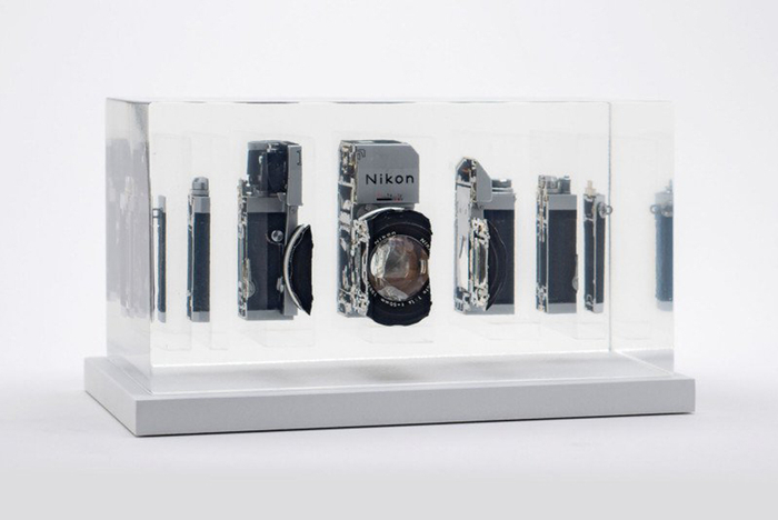 瑞士摄影师兼艺术家Fabian Oefner推出名为“CutUp”的艺术作品。Fabian Oefner将多款复古相机切成片状后固定在树脂中,以此展示这些价格昂贵的相机内部工作原理。Fabian Oefner目前已经完成了6个这样的“相机雕塑”,他计划在未来扩展这一项目,以涵盖更多的技术对象。