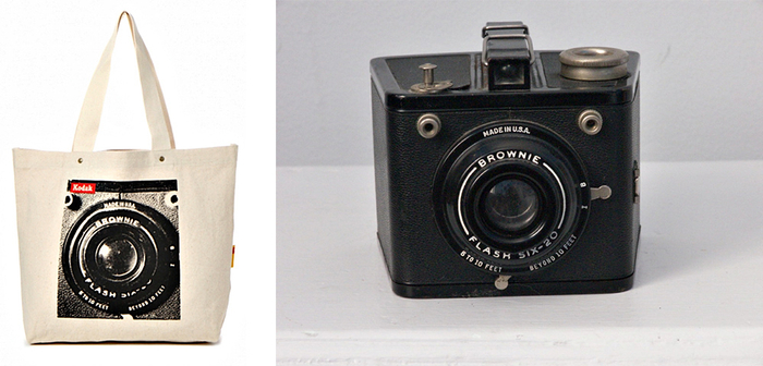 柯达与日本niko and…合作推出了一款印有Kodak商标、相机和菲林包装设计的帆布袋。联乘系列帆布袋共有10款,不含税的售价为2300日元,约合人民币150元。
