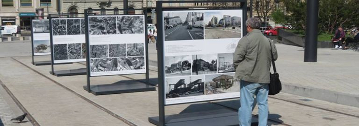 △ 2018 年年底,适逢庆祝捷克斯洛伐克(Czechoslovakia)建国一百周年,被列为保护建筑的国家博物馆旧栋完全结束了修缮,重新对公众开放。一段从 Vinohrady 到 Wenceslas Square 的电车轨道是其翻新的一部分,与新旧博物馆大楼和一座公园毗邻,然而尚未接入网络。布拉格人在这个看似不可能的位置办起了展览。位于轨道中间的 26 块立牌,详尽地向过路者展示国家博物馆地带的历史变迁。图片来源 | Prague.tv