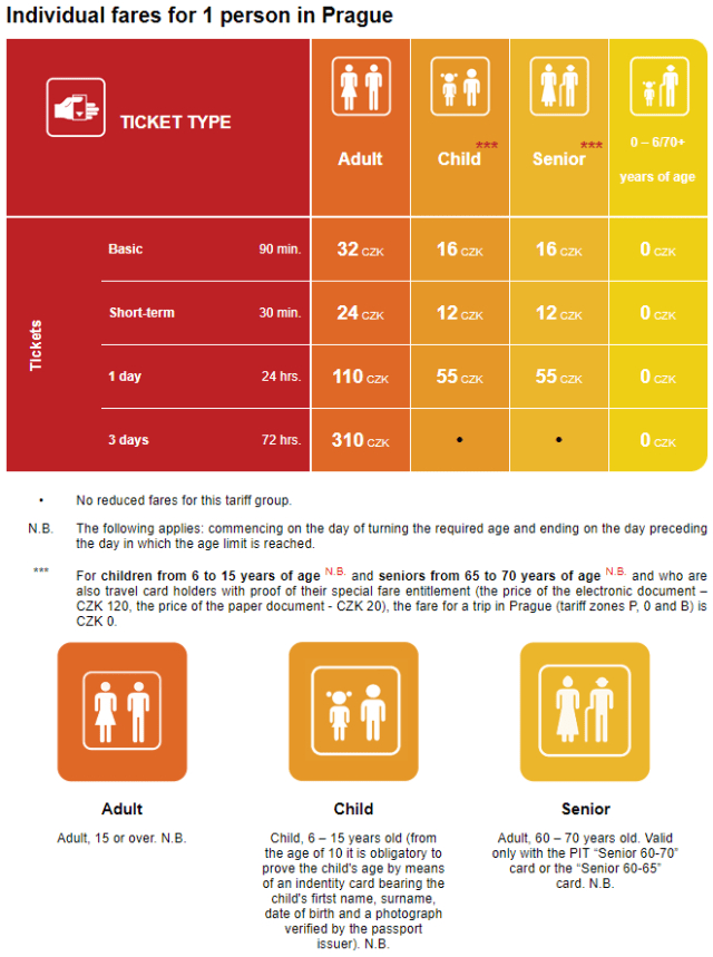 △ 布拉格所有车票遵循同一个系统,临时票按照旅行时间分为基础(Basic)、短途(Short-term)、一日(24 hrs)、三日(72 hrs)四种,价格从 32 克朗(约合 9.7 元人民币),一直到最贵的 310 克朗(约合 93.4 元人民币)。