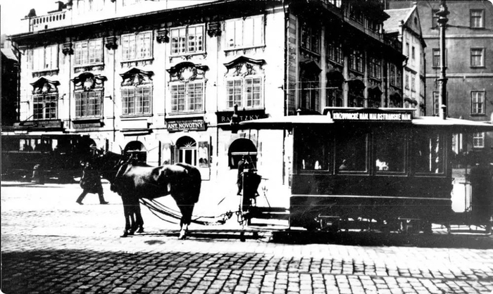 由马拉动的轨道巴士最早于布拉格街头出现,是在一个多世纪以前的 1875 年,这条路线始发自城市居民区,终于国家大剧院。这些车厢比一般的马车要宽敞,一次可以坐下许多人,而车轮下的两道轨迹,不仅便于寻路,也能减轻石板路上轮子的负担,对马来说也轻松省力。