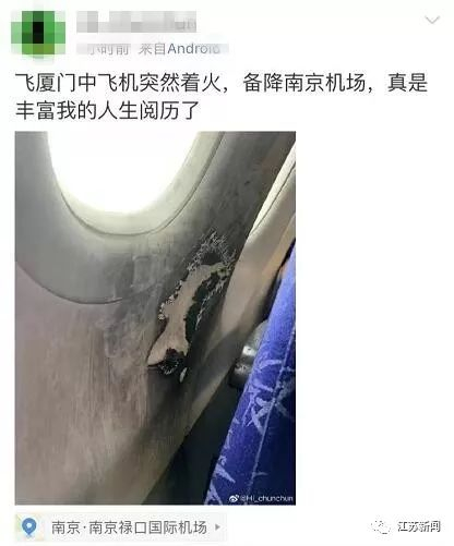 “飞厦门中突然着火,备降南京机场。”