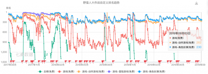 根据七麦数据显示,《野蛮人大作战》截至目前iOS中国区游戏免费榜已经跌倒837名,动作游戏免费榜跌至262名,角色扮演免费榜跌至230名。在收入方面,畅销总榜已经跌至961名,游戏畅销榜跌至600名,动作游戏畅销榜已经跌至197名,角色扮演畅销榜跌至311名。