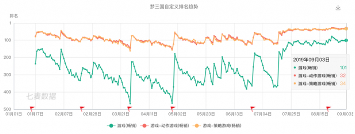 截至今年,《梦三国》的运营周期已达十年,衰退之势并未得到改善。