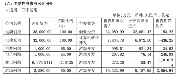 通过对游动网络2019年3-6月份财务的并表,电魂网络营收、归母净利润得到了迅速提升。报告期游动网络实现的营业收入为 5296.88 万元,占公司总营业收入的 18.03%;实现归母净利润为 1648.74 万元,占公司归母净利润的 19.32%。