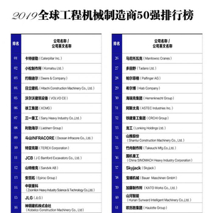 原标题:12家中国企业入榜2019全球工程机械制造商50强
