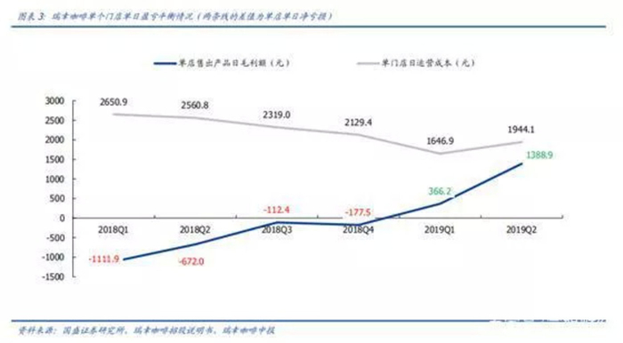 2019年二季度,瑞幸在免配送门槛由35元提到55元、免费赠送产品的占比大幅下滑、由三分之一下降到了不足十分之一等优惠政策变动的前提之下, 单店销售现制饮品杯数达到了267杯,环比上涨42%。