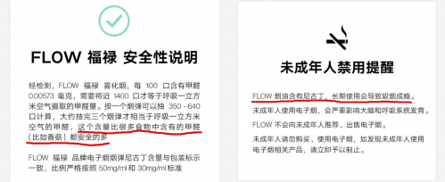 此前据澎湃新闻报道,一位河北消费者武某将福禄(FLOW)电子烟相关公司告上法庭。原因是发现网购平台上宣传电子烟“无害”的广告与“含成瘾性物质”的产品说明自相矛盾。