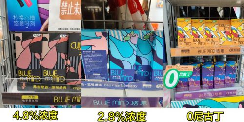 另外,为了迎合尼古丁上瘾者的需求,国内电子烟品牌也会在产品中加入不同浓度的尼古丁。例如,「悠意」在该店销售的一次性雾化烟分有3种尼古丁浓度:4.8%、2.8%、以及不含尼古丁款。