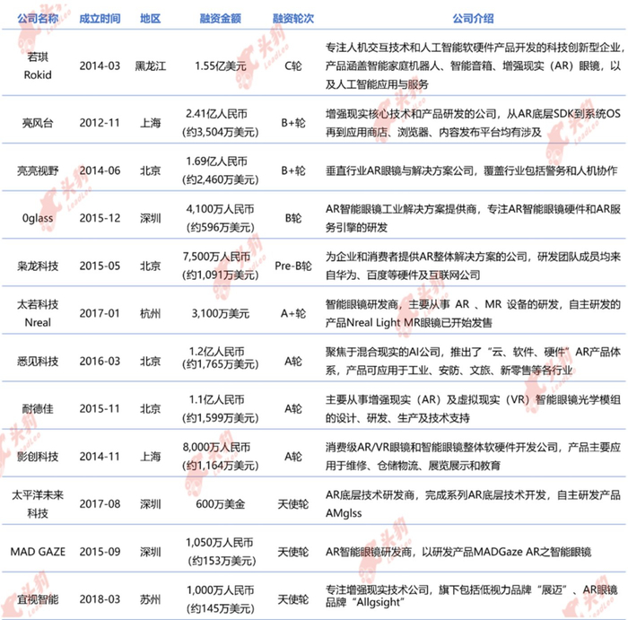 从资金角度分析:初创企业的融资能力是决定企业初期生存发展的关键,因此在国家政策大力支持AR全产业链发展的背景下,地方政府开始逐步落实具体的财政扶持政策。2017年3月,深圳市发改委颁布《VR/AR产业专项扶持资金申请指南》,提出在深圳市(含深汕合作区)注册、具备独立法人资格的从事VR/AR的企业与机构可获得资金扶持。2018年8月,南昌市人民政府办公厅颁布《关于加快VR/AR产业发展的若干政策(修订版)》,提出对新引进实际到位投资额达500万元(含)以上的VR/AR企业,按其到位投资额的6%,给予不超过500万元的一次性奖励,以及对VR领域重点龙头企业、极具市场前景的创新型企业、自主技术创新平台、以及带技术、带成果、带项目的人才团队,采取 “一事一议”的方式给予支持。地方政府对AR企业和项目提供财政资助,助推AR智能眼镜行业加速实现规模化生产和创新化经营模式。