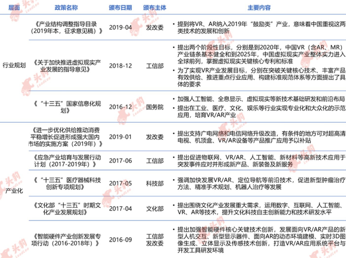 中国政府从行业整体规划和产业化两方面颁布相关政策,鼓励和推动中国AR智能眼镜行业的发展。
