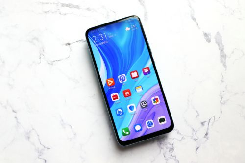 机身正面,华为畅享10 Plus摒弃了刘海屏、水滴屏和挖孔屏设计,采用的是一块6.59英寸的19.5:9显示屏,由于采用了升降摄像头的设计,使得该机的屏占比达到了91%,并且没有了以往“水滴““开孔”的遮挡,不论是看视频还是玩游戏,都能获得更广阔的视野。