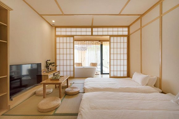 情侣出游,既要环境浪漫,又需兼具一定的私密性。日式风格的苏州花时5号•和风民宿还挺适合情侣二人居住的,独门独院,私密性很高。