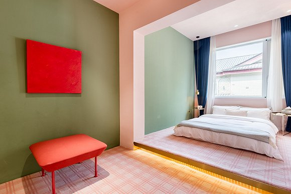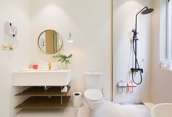 设计师Sherry将这栋有300平米室内空间合理有效地划分出了五间客房,每间客房都拥有独特氛围与舒适的起居环境。卧室和浴室是小女生喜欢的ins风,金色、粉色运用得恰到好处,清新又梦幻。