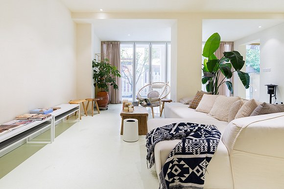别墅的主人Sherry是一位女设计师,她以极简的空间设计,搭配温暖舒适的室内软装,将"家"与“宿”的生活旅宿理念融合于城市之中,通过设计与人对话,成为一间会呼吸的房子、有故事的民宿,使得这里每一处设计传递着简单舒适的“生活美学”。