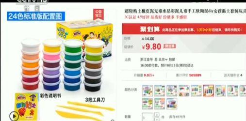 比如这款标称美阳阳牌黏土玩具,在天猫商城上销量排名第一,月成交量超过9万件。其宣传页面中写道“采用食品级原材料,并且通过欧盟质量标准,是妈妈的放心之选”,但是本次比较试验发现,该链接下采样的美阳阳24色超轻黏土硼元素迁移量实测值为1470mg/kg,是标准要求的1.2倍。