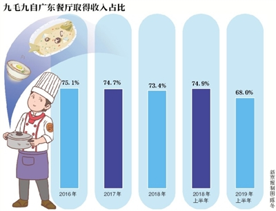 事实上,2016年,九毛九便开始寻求A股上市,但一直未能登陆资本市场,在2018年撤回A股上市申请并开始筹备香港上市。2016年-2018年,九毛九实现期内溢利分别为5128.6万元、7164.7万元和7384.8万元。区域性较为明显,2016年、2017年、2018年、2018年上半年及2019年上半年,九毛九分别自广东餐厅取得收入的75.1%、74.7%、73.4%、74.9%及68.0%。
