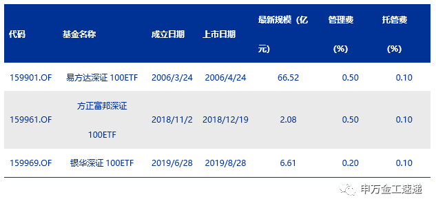 表2:目前市场上以深证100为标的ETF列