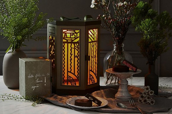 法国设计师品牌agnès b旗下咖啡店agnès b. CAFÉ每年的月饼礼盒都能巧妙地将法式浪漫情意和中国的古典诗情结合起来。在今年推出的月饼礼盒中,agnès b. CAFÉ的美食创作者们采用了寓意美好的红色与带有古时悠闲画意的清淡墨绿色进行包装,并把礼盒做成了灯笼状,内部还置入了一盏小灯可以随时点亮。