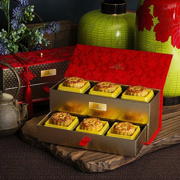 今年香港文华东方酒店推出的月饼礼盒除了包含经典的莲蓉和蛋黄口味外,还别出心裁地将带有浪漫意蕴的巧克力和香草滋味收入其中。