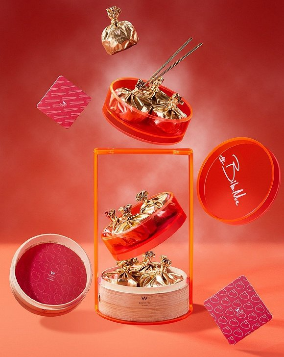 W酒店所倡导的潮流化态度与中秋月饼碰撞时,一种奇妙的融合产生了。今年上海外滩W酒店推出的“YĀO YÁO YǍO YÀO 邀 摇 咬 耀”中秋月饼礼盒采用具有传统气息的小笼包蒸笼作为包装,并以金属色包装纸将月饼裹住,造型十分别致。在口味上,外滩W酒店特别创作了一款由鸡尾酒进行调味的月饼,非常适合与家人一起在霓虹灯酒吧中赏月品尝。