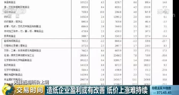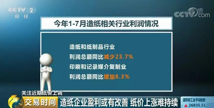 据国家统计局公布的数据,今年1-7月份,造纸和纸制品行业利润总额同比减少23.7%,印刷和记录媒介复制业1-7月利润总额同比增加8.3%。