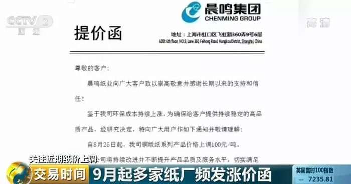9月起多家纸厂频发涨价函