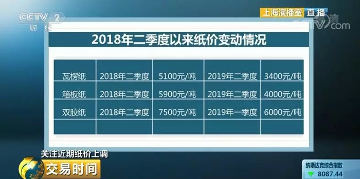 华创证券轻工行业首席分析师郭庆龙:我们自己觉得有两方面的原因,第一个方面是季节性原因,因为整个文化纸大类在三四季度会迎来非常明显的旺季;第二个方面是微观跟踪下来,整个文化纸的纸价是在2018年一季度触顶的,一直从2018年一季度调整到2019年二季度,经历了大概一年半六个季度的调整。