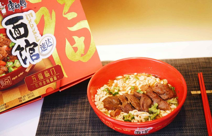 除了产品升级,在品牌年轻化上,2017年,康师傅方便面一些老牌口味如香辣牛肉、爆椒牛肉等与“王者荣耀”合作,老坛酸菜则与功夫熊猫合作,吸引年轻消费群体,同时,上市主打高汤熬制的高端产品“藤椒豚骨”系列等。