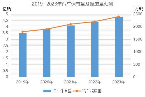 截至2018年末,全国机动车保有量已达3.27亿辆,全国汽车保有量达2.4亿辆。以2019年-2023年8%的机动车保有量增长率和5%的报废率为测算基础,2023年汽车报废量将达2400万辆,未来5年,汽车报废量将达1.04亿辆。安信证券指出,按一辆汽车“五大总成”回收价值5000元~7000元、报废汽车回收率5%测算,目前我国报废汽车回收市场规模高达600亿元~840亿元。行业广阔的发展空间和政府政策的支持正显现强大的“虹吸效应”,众多投资者进军报废汽车拆解领域。