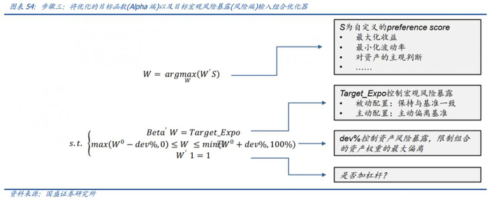 将优化的目标函数(Alpha端)以及目标宏观风险暴露(风险端)输入组合优化器;