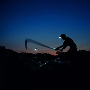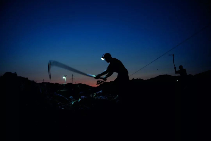 戴上矿灯,背着篓筐,在夜里就开始“淘金”的拾荒人。
