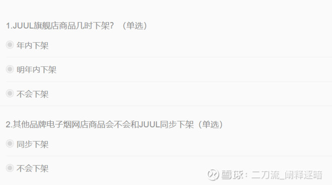 没想到那么巧,JUUL天猫和京东旗舰店于周五(9.13)夜23:00左右全部商品就下架了。当然这个和我的预测是毫无关系的。但大家可以看到这个虽然参与人数不多,但也多多少少能代表一些普通人的普遍看法的就是,含有尼古丁的电子烟不应该作为普通商品售卖,而应该会被中国烟草专卖局纳入管辖范围。