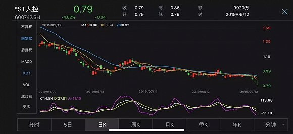 以*ST大控为例,在披露董事长“卖房增持”后的第一个交易日,也就是9月12日,公司股价高开低走,经过震荡后又被死死地按在了跌停板上,收于0.79元/股。这也意味着,即使接下来的四个交易日公司股价连续涨停,也无力再站上1元。