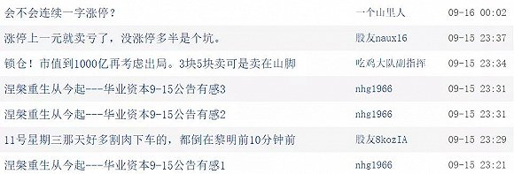 无论如何,*ST华业的中小股东们在消息披露后总算看到一线希望。股吧里的不少中小股东不仅期待股价涨停,更是期待着股价连续“一”字涨停,甚至连夜讨论到底该在第几个涨停板的时候卖出才合适……